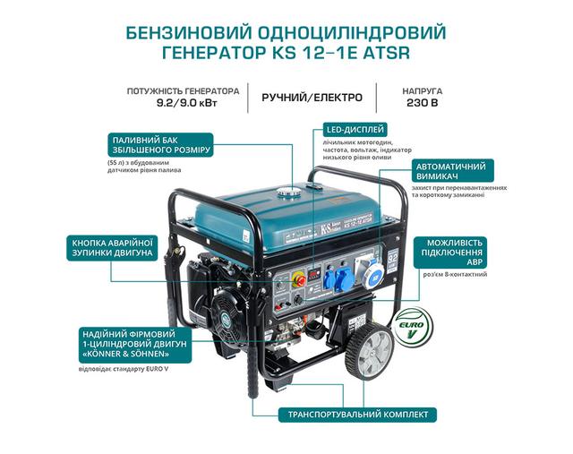 Модель генератора Кенер Сонен KS 12-1E ATSR – це бензиновий генератор з максимальною потужністю на одному циліндрі!